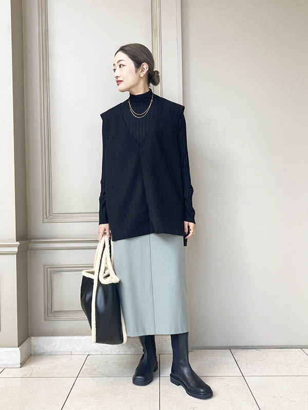 ベストのレイヤード、チェルシーブーツなどトレンド感を入れつつも、シンプルで洗練された印象です。
