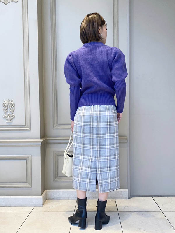 グレーのニットを合わせるのもいいけど、もう少しメリハリが欲しい…そんな時は、パープルを頼りにトップスに取り入れるのが間違いなし!