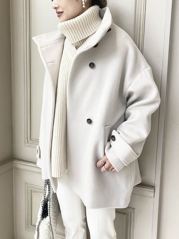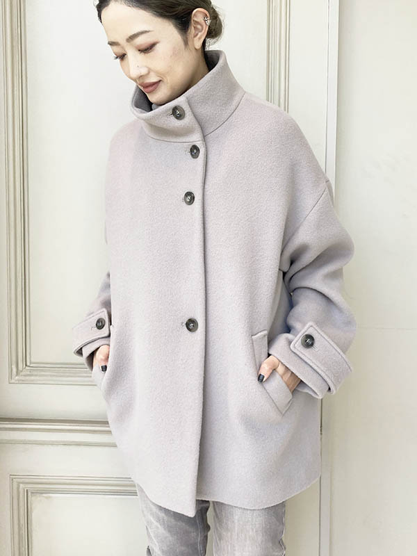 スタンドカラーはボタンを全て閉めるとマフラーいらずで暖かく、ボタンを開けるとビッグカラー風にも着用いただけます♪