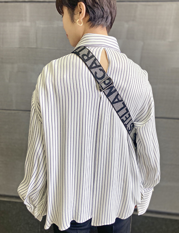 ビスコースレーヨンの糸で繊細に織り上げたストライプはしっかりとした生地感ですが、柔らかく落ち感もあり、見た目はマスキュリンですがどこか女性らしさを感じさせてくれます。