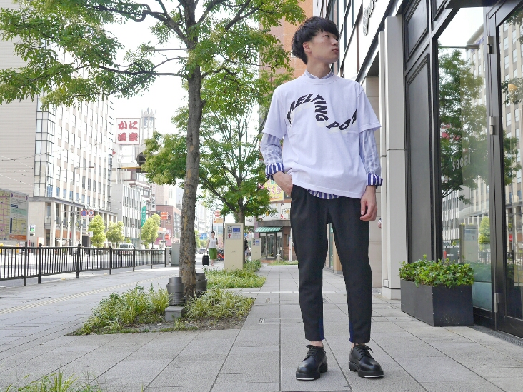 同じsacaiの“melting pot”のカットソーを上に重ねて、レイヤードスタイルを楽しむのもオススメです。