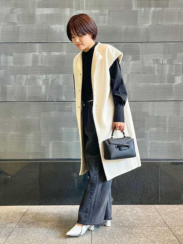 EVER MINI MINIは、大人なモードカジュアルスタイルにも相性抜群です!程よくモダンな雰囲気のあるバックなので、カジュアルすぎない印象に仕上げてくれます。