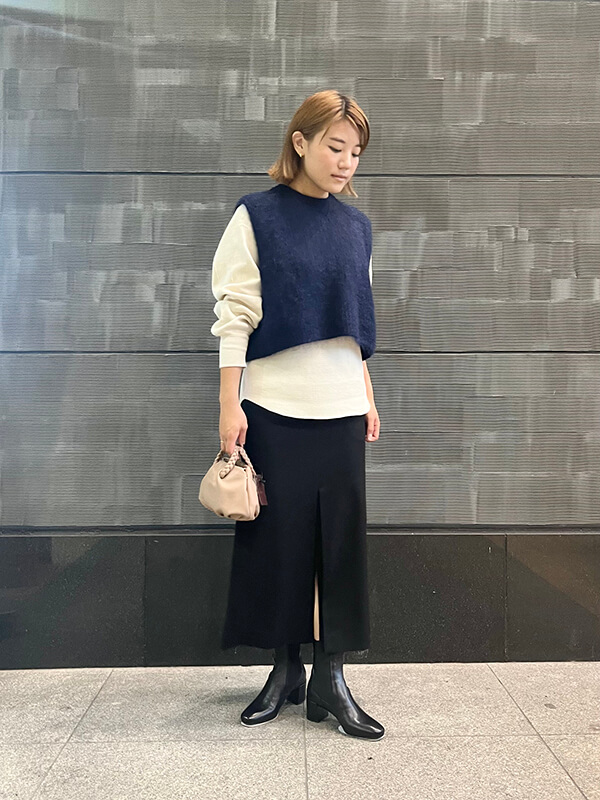 サイドゴアと聞くとカジュアルな印象を受けますが、こちらはヒールがあるので綺麗めなスタイリングにも取り入れて頂ける嬉しいアイテムです!