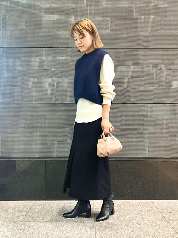 足首からつま先にかけてスッキリとしたシルエットが綺麗なブーツです!足元が見えるスカートと相性も良いですよ◎