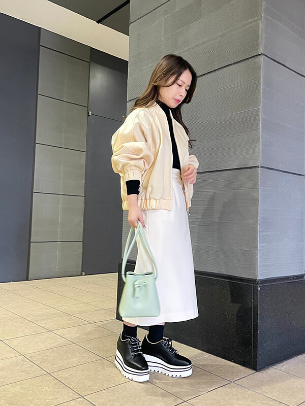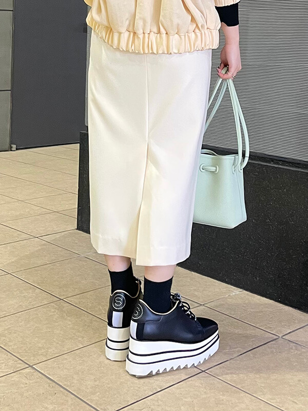ソールに高さはありますが幅はコンパクトなので、程よいボリューム感で履きこなせて、スタイルアップにつながります。
