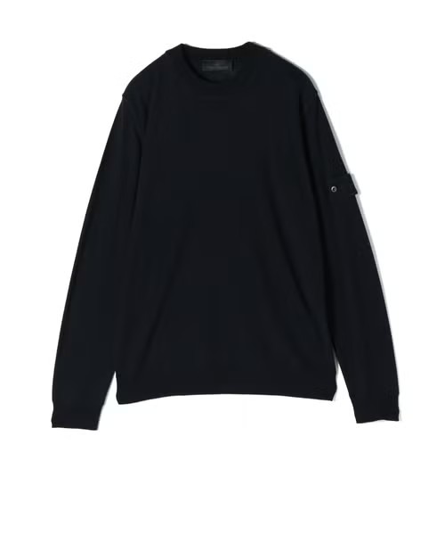 【デザイン】 STONE ISLAND(ストーンアイランド)のリブニット。ややゆとりのあるスタンダードなシルエットで、右腕にはブランドを象徴するアイコンパッチが配されています。インナーとしてもアウターとしても活躍する一枚です。