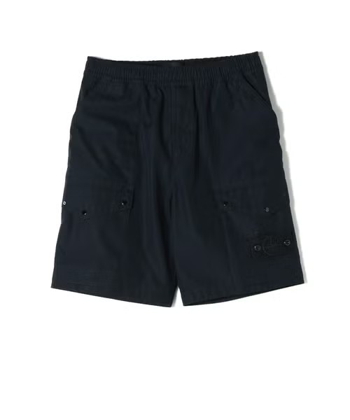 【デザイン】 STONE ISLAND(ストーンアイランド)のショートパンツ。ミリタリーウェア由来の機能美を落とし込みながら、モダンなルックスに昇華したカーゴショートパンツ。レギュラーフィットのシルエットに、フロントのハンドポケットや大きめのカーゴポケットを配置し、日常のアクティブシーンでも実用性を発揮します。ガーメントダイによる深みのあるカラー表現が、シンプルながらも独特の存在感を演出。左サイドにはブランドアイコンのコンパスワッペンがさりげなく配され、控えめなアクセントになっています。