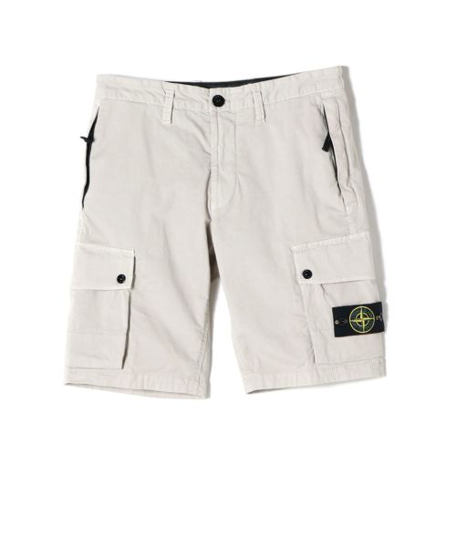 【デザイン】 STONE ISLAND(ストーンアイランド)のカーゴショーツ。スリムなシルエットとスタンダードなレングス仕様で、大人のための一本となっています。左脚にはおなじみのコンパスロゴパッチが配された愛顧忍苦なデザイン。