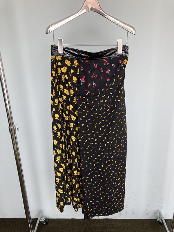 スカートは、ウエスト部分にパテント加工を施したベルトを配し、TOGAらしい毒のあるアイテムへと昇華しています。質感の異なる素材の組み合わせも今季のキーとなっています。