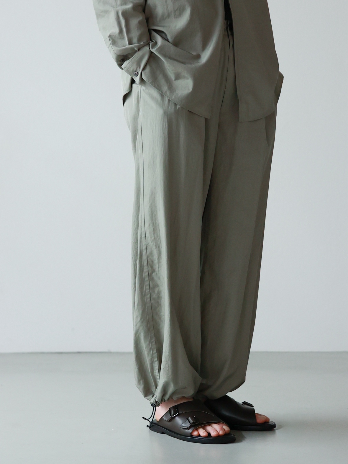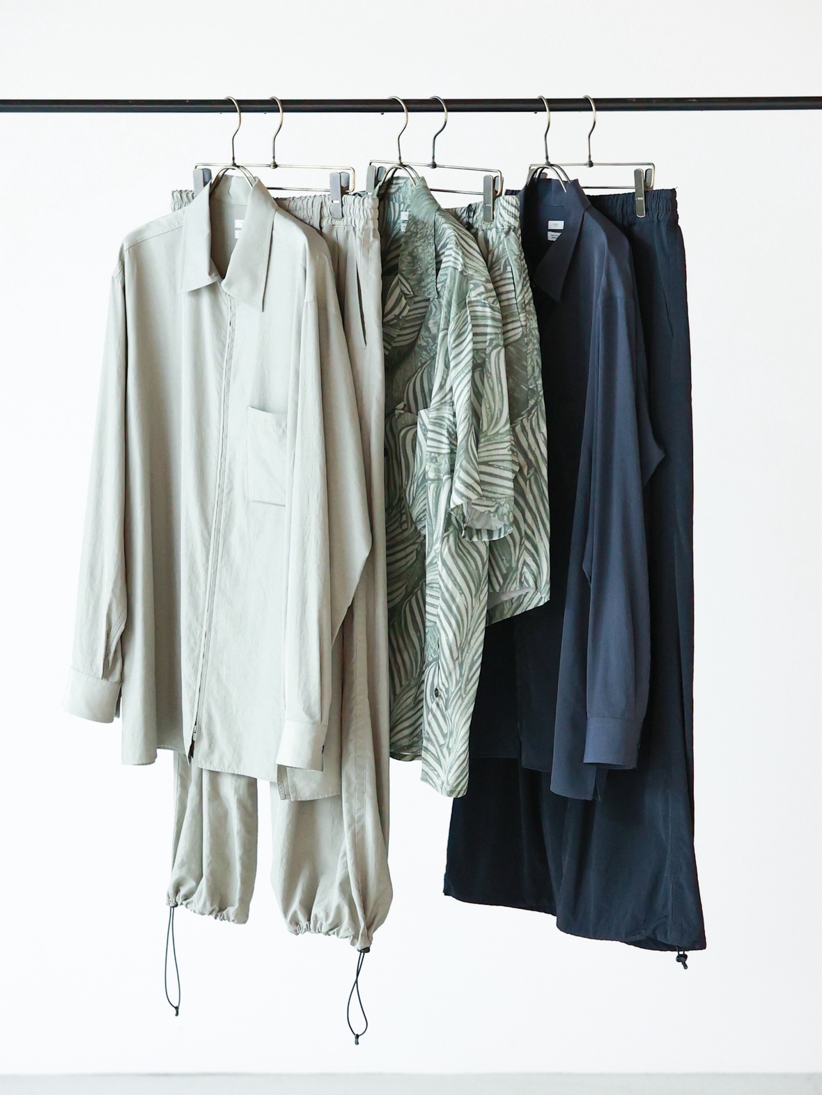 シルエットの完成度、肩の落ち方、身幅のバランス、パンツのラインまですべてが計算されています。