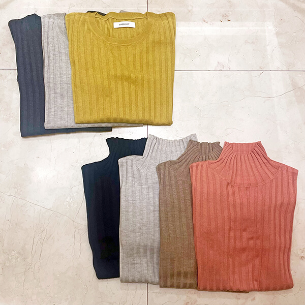 ハイネックとクルーネックの2型ご用意がございます!ご自身の骨格やお好みのカラーで是非お選び下さい!
