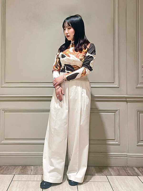 生地の光沢感が美しく、今季も引き続きトレンドであるレイヤードスタイルにも重宝します✨ホームケアが出来るのも嬉しいポイント♪