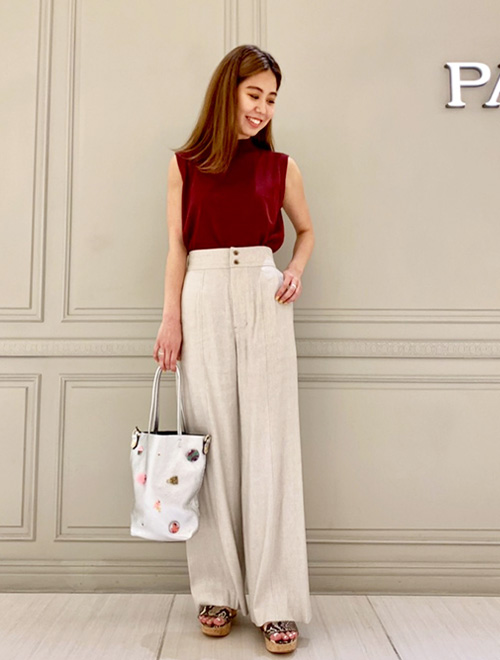 ハイウエストのボトムスと合わせてスタイルアップも叶います。