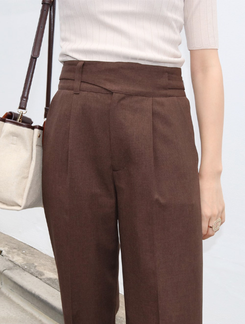 脚のラインを真っ直ぐ見せてくれるシルエットとハイウエストのデザインで