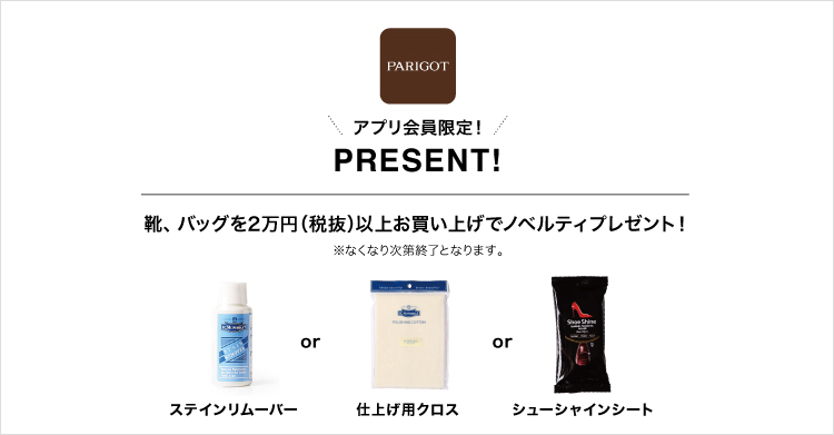 ただ今パリゴメンズでは、シューズフェアを開催中です。