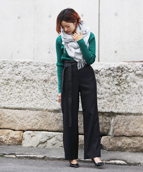 さらっと垂らすだけで縦のラインを強調してくれ、スタイルアップが簡単に叶います。