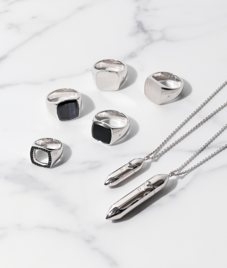 クリーンで美しいジュエリーたちは圧巻のクオリティ。アイコンでリングをはじめとし、弾丸モチーフのネックレスなど新作も含む豊富なラインナップとなっています。