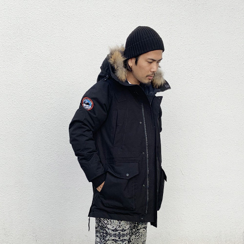 北極探検隊の防寒着を作るブランドならではの本格使用のディテールとなっています。