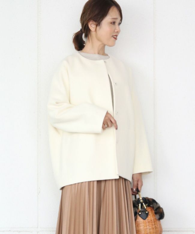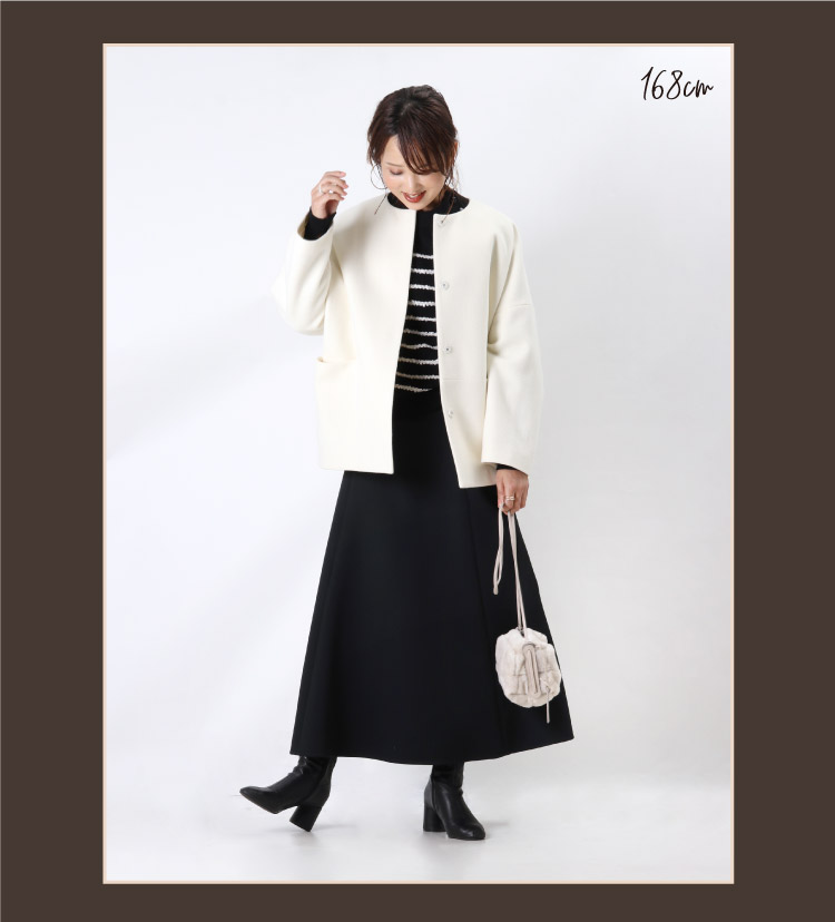 ショート丈でスカートに合わせやすく、更にスタイルUPして見せてくれるコートです。