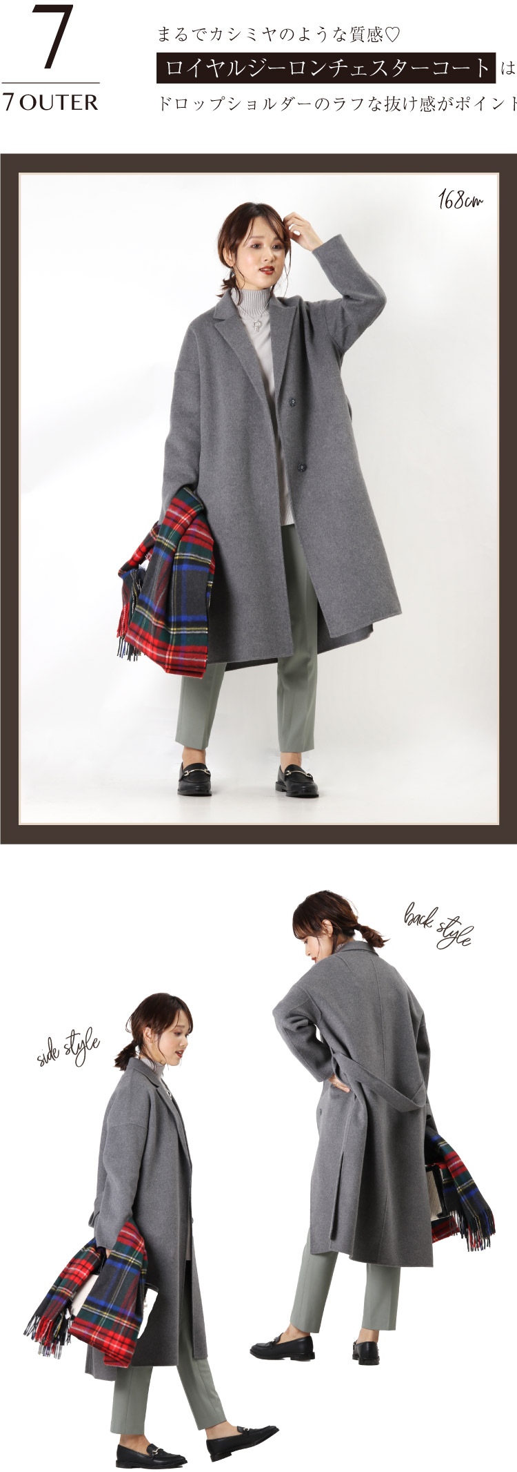 着丈・袖丈ともに長めで、存在感のあるコート。