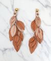 ハンサムなセットアップも色使いで女っぽく。こっくりカラーのブラウンは、ヌーディーなベージュ小物でまとめて。存在感のある小物も、洗練された大人な仕上がりに。