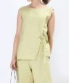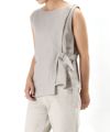 ✓アシンメトリーデザインでハンサム顔!ノースリーブのウエストベルトリネンブラウス