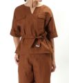 ✓セットアップはもちろん、シンプルなTシャツやきちんと感のあるブラウスとも相性が抜群!着まわし力の高いブラウスリネンワイドパンツ