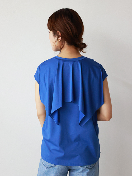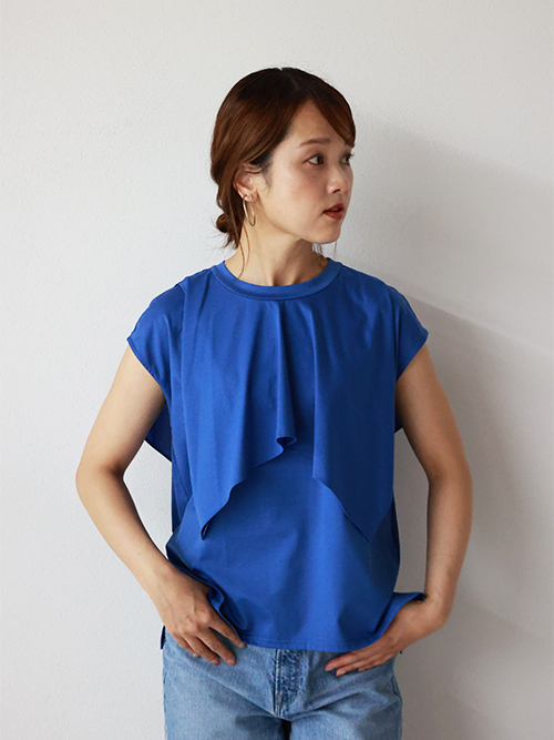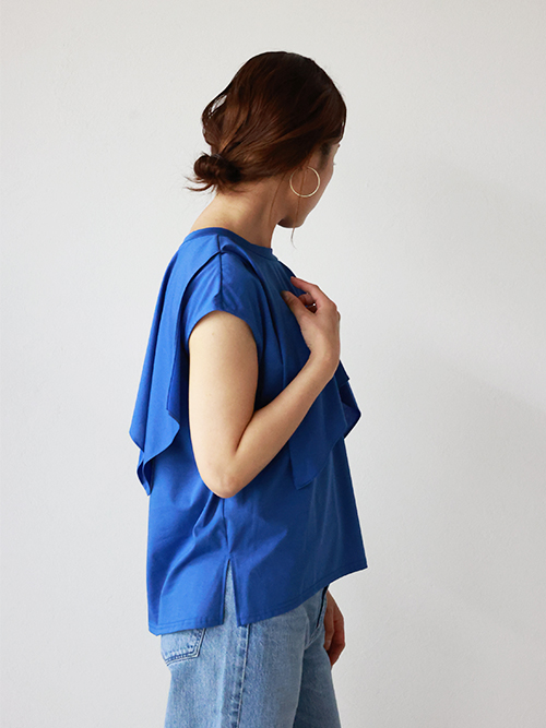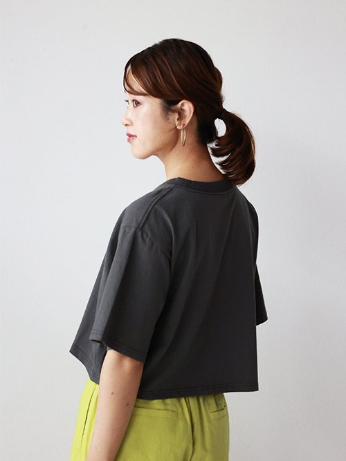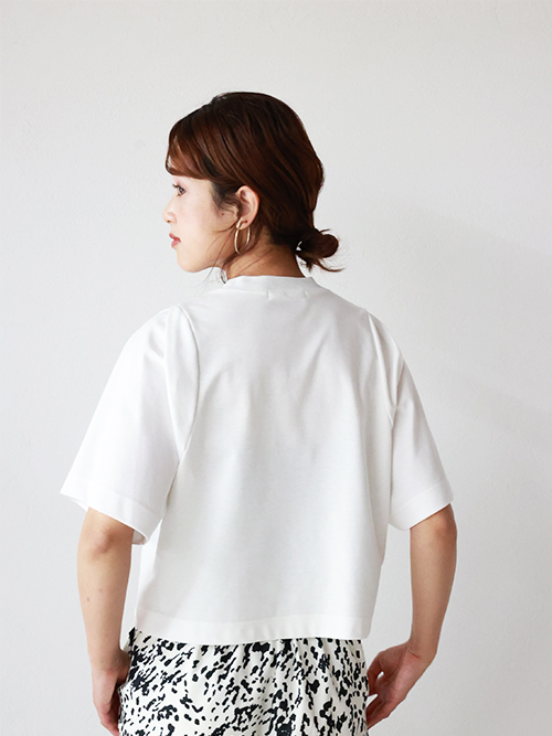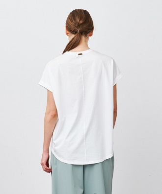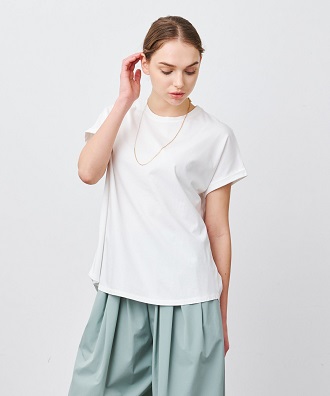 袖にタックを施したカットソー。タックデザインにより腕周りをカバーしてくれます。ややショート丈に仕上げて、様々なボトムとも合わせやすいシルエットです。