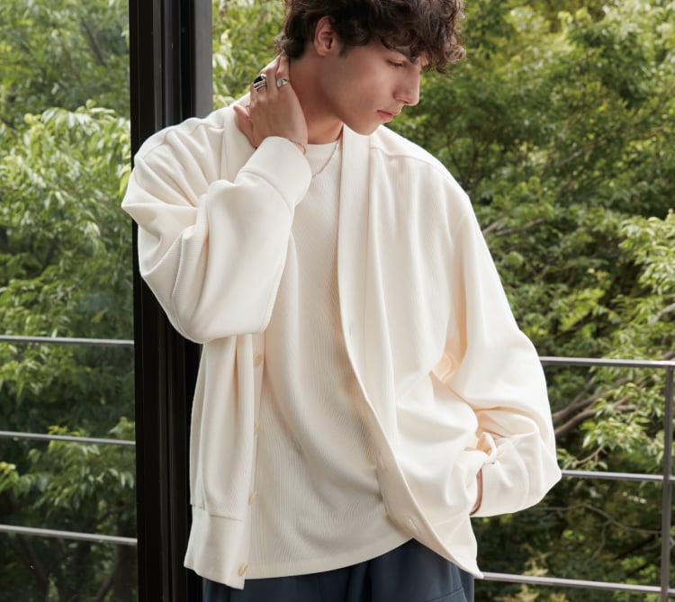 CARDIGAN / ¥46,200 : 08sircusCUTSEW / ¥35,200 : 08sircusPANTS / ¥41,800 : thNECKLACE / ¥52,800 : TOM WOODBRACELET / ¥35,200 : TOM WOODRING / ¥55,000 ¥45,100 ¥69,300 : TOM WOODSHOES / ¥82,500 : foot the coacher