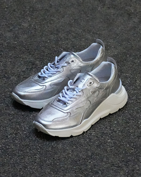 アッパーにはオールシルバーのレザーを配し、足元の光沢がモード感のある一足。