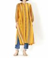 ne quittez pas のPARIGOT別注ワンピース。袖口がゴム仕様になっており、手首を出してすっきりと着用していただけます。ウエストのベルトをきゅっと絞って着用したり、前のボタンを開けて、夏の羽織りとして着用するのもオススメ。表情豊かなマルチストライプ柄がシーズンムードを高めてくれます。