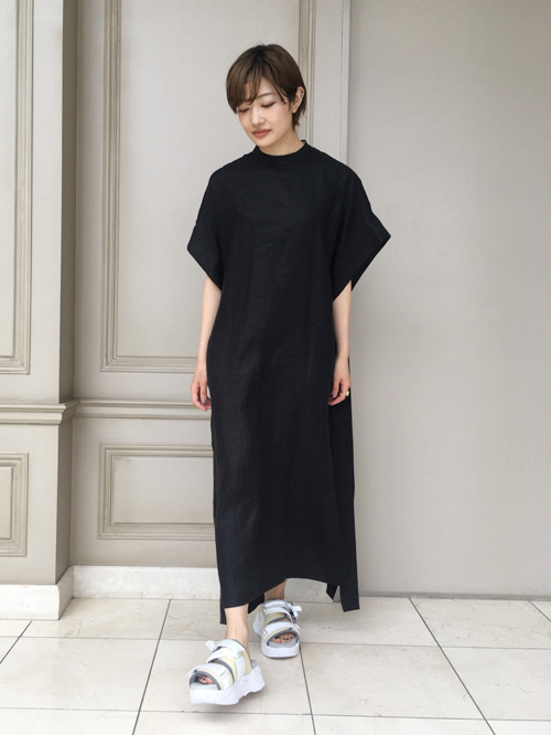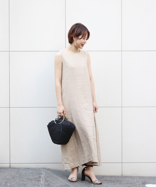 夏に1枚は欲しい、シンプルなリネンワンピース。Aラインのマキシ丈で、シンプルながらも存在感のある雰囲気に。歩く度に揺れる裾が目を惹きます。シンプルなクルーネックで、ネックレスやストールなどで遊びを加えても。バッグや靴、帽子など、アレンジを加えて着こなしを楽しめるアイテムです。