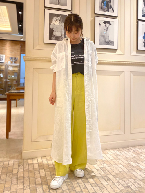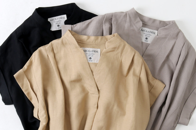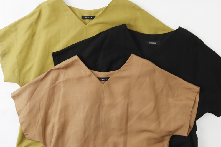 麻のスラブ感が見られるざっくりしたルックスの、清涼感のあるやや薄手の素材を使用。サラッとした肌触りとレーヨンのしなやかさを合わせ持ち、さらにバイオ加工による柔らかさをプラスして着心地の良い素材となってます。