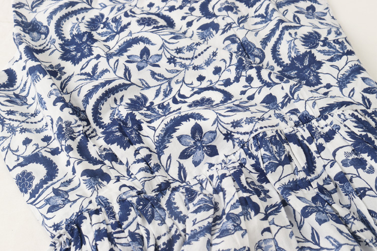 白地にブルーの涼しげなフラワー柄が目を惹くエキゾチックビッグフラワー柄。繊細なプリントは、上品な雰囲気も与えてくれます。