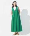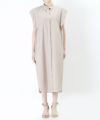 深めのキーネックが首元をすっきりと見せてくれるワンピース。
