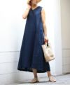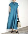 ゆったりとしたシルエットながらも、ロールアップしたフレンチスリーブやスキッパーデザイン、動くたびに揺れるマキシ丈など、こなれポイントが詰まった着映えワンピースです。