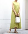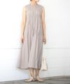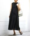 ロントのギャザーデザインが印象的なノースリーブワンピース。