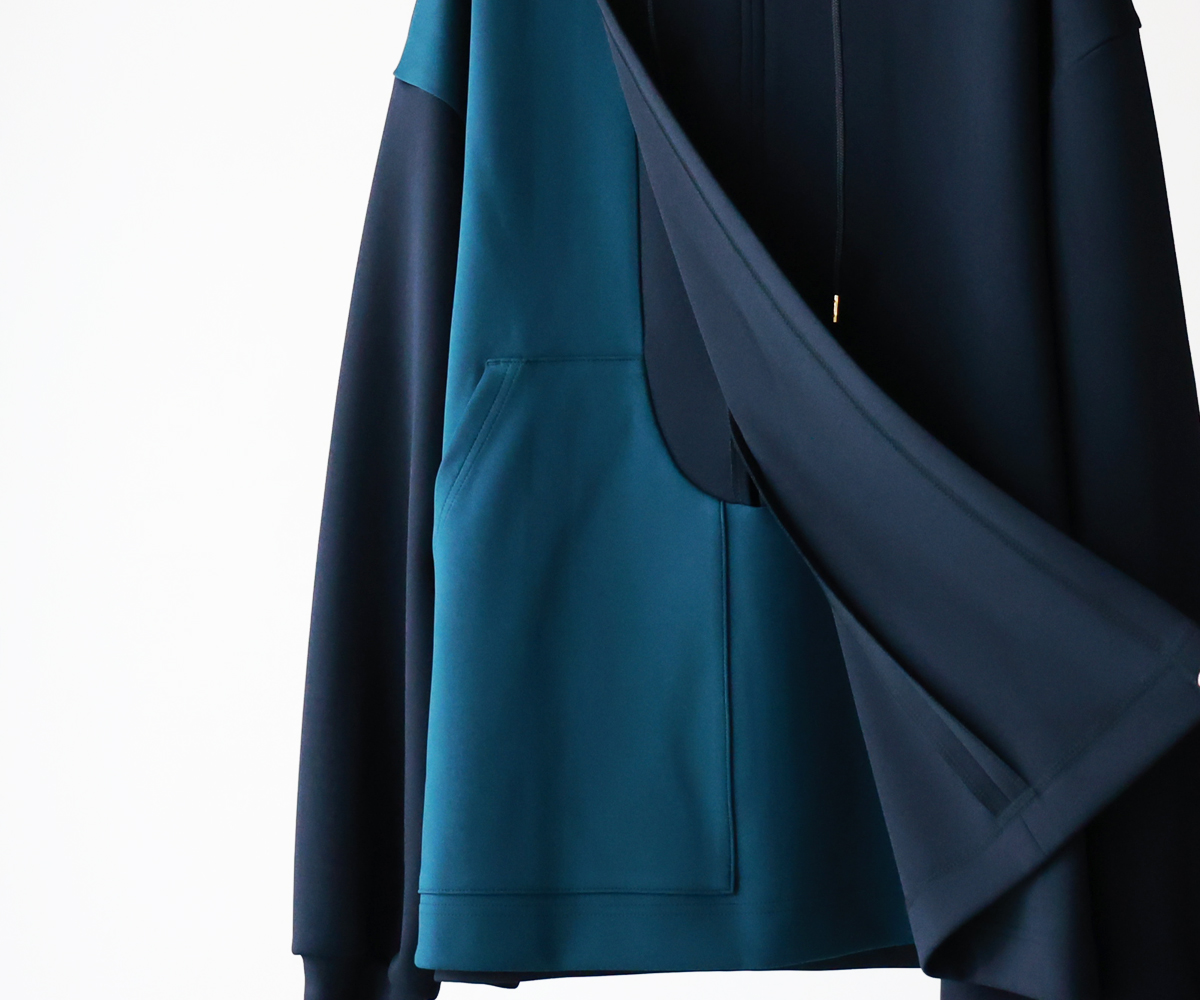 今回はインラインでも展開されているフーディ―をPARIGOT別注で作成。遊び心を感じさせながらも上品にまとまった1着となっております。
