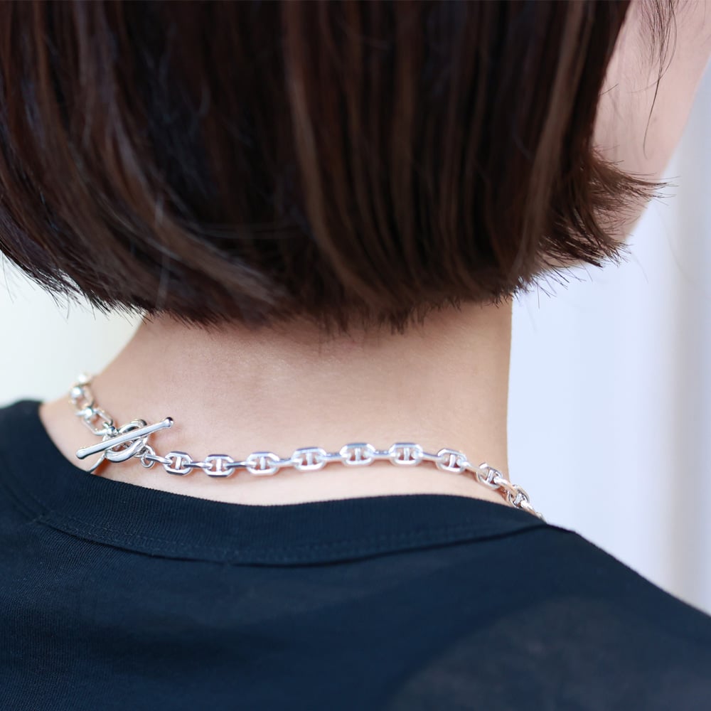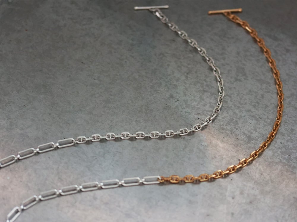 Philippe Audibert(フィリップ オーディベール)とパリゴの限定デザインネックレス。異なる2種類のチェーンを組み合わせ、短めに設計されたシルエットがスタイリングのアクセントに。存在感のあるデザインが視線を惹き付けます。シルバーとシルバー&ゴールドのバイカラーの2色展開です。