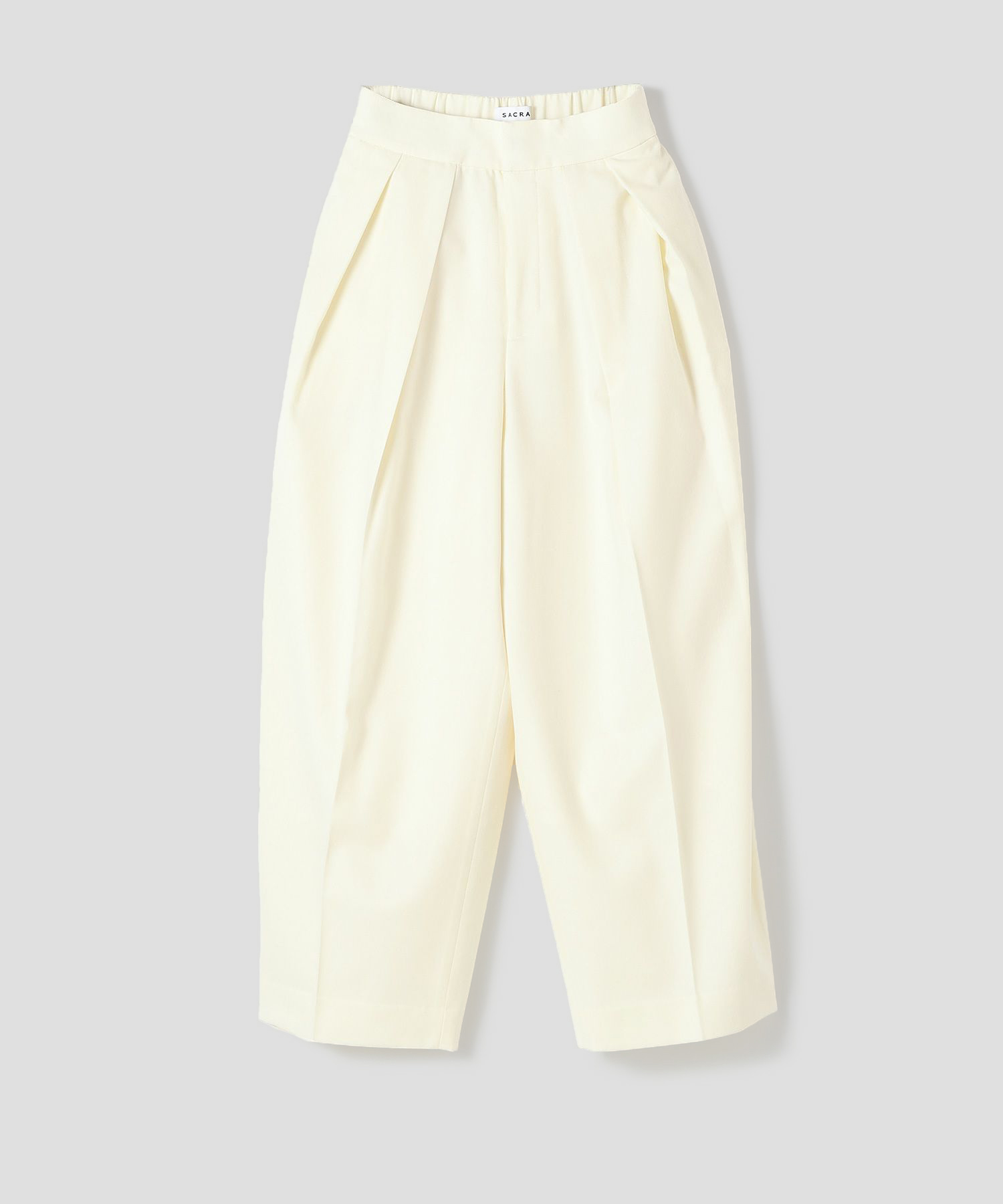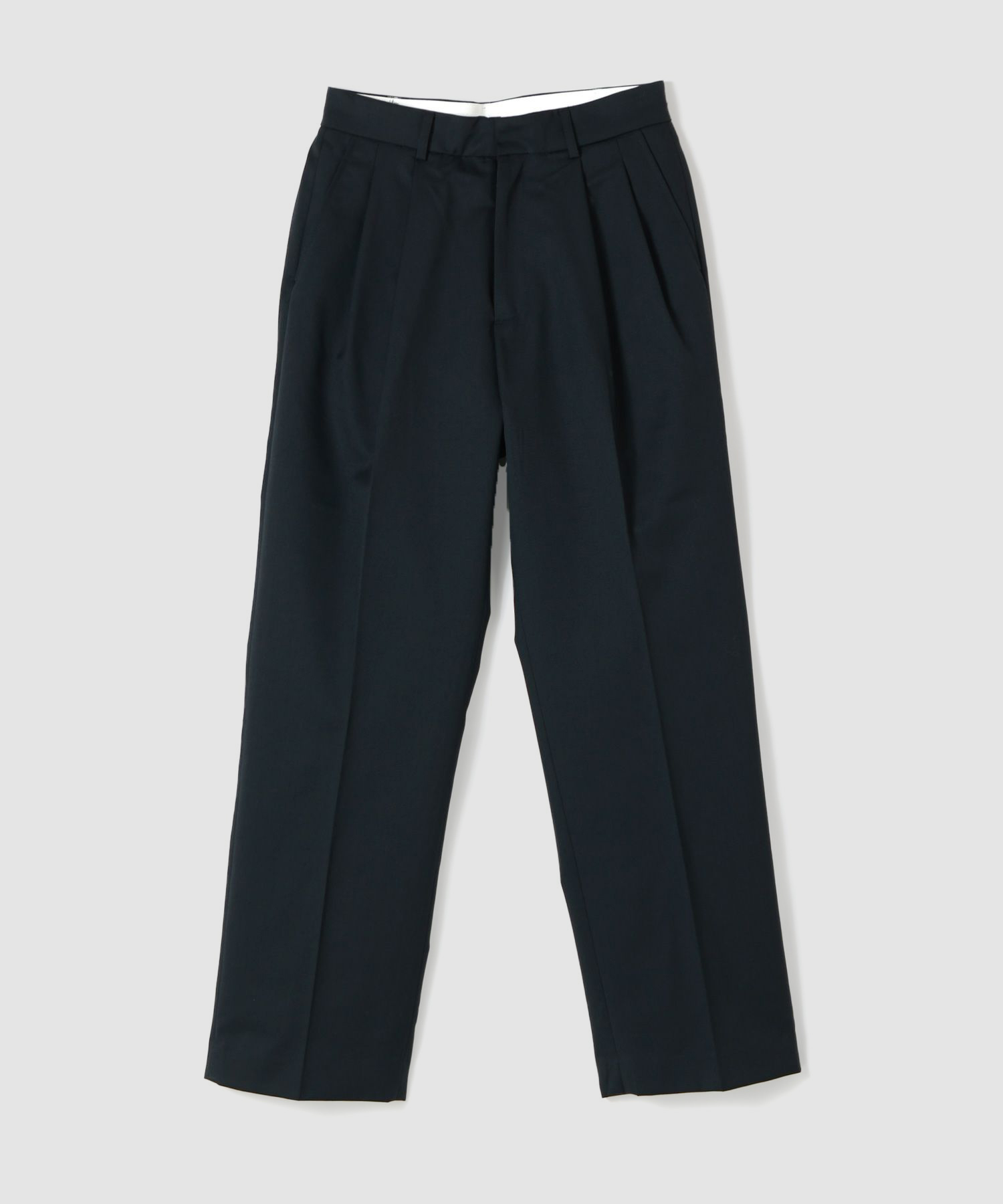 メンズライクな雰囲気を醸し出すやや太めのテーパードシルエットは、2タックで腰回りをゆったりと仕上げつつも、裾にかけてテーパードした美しいシルエットです。