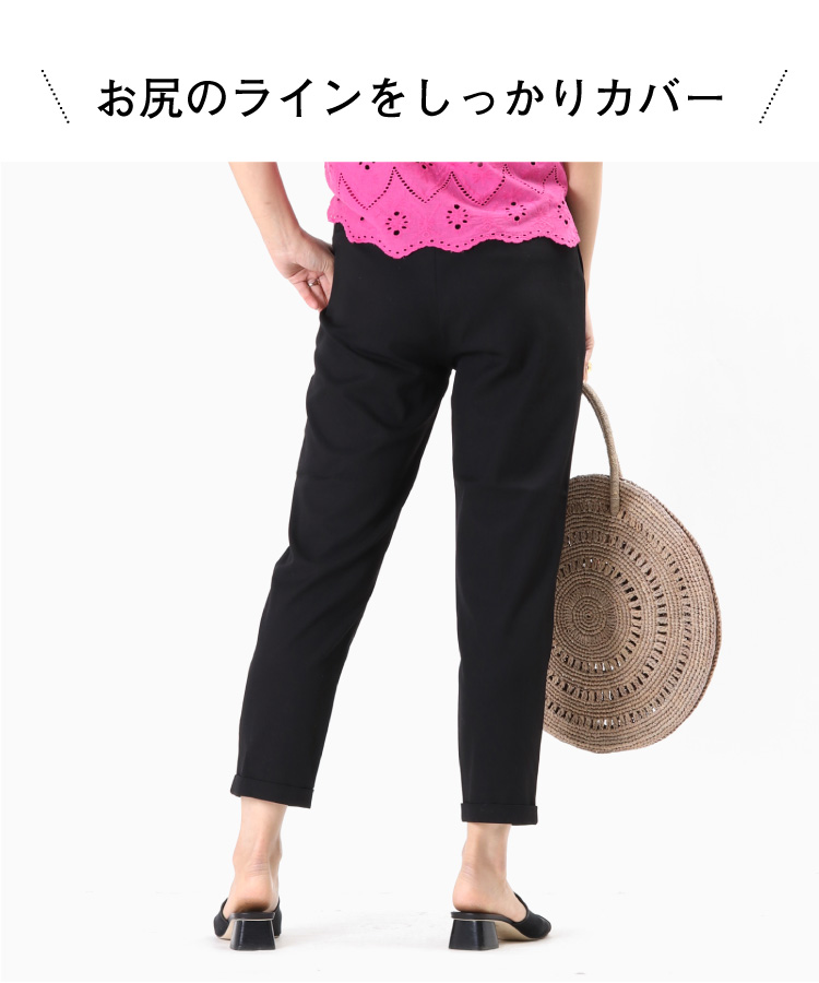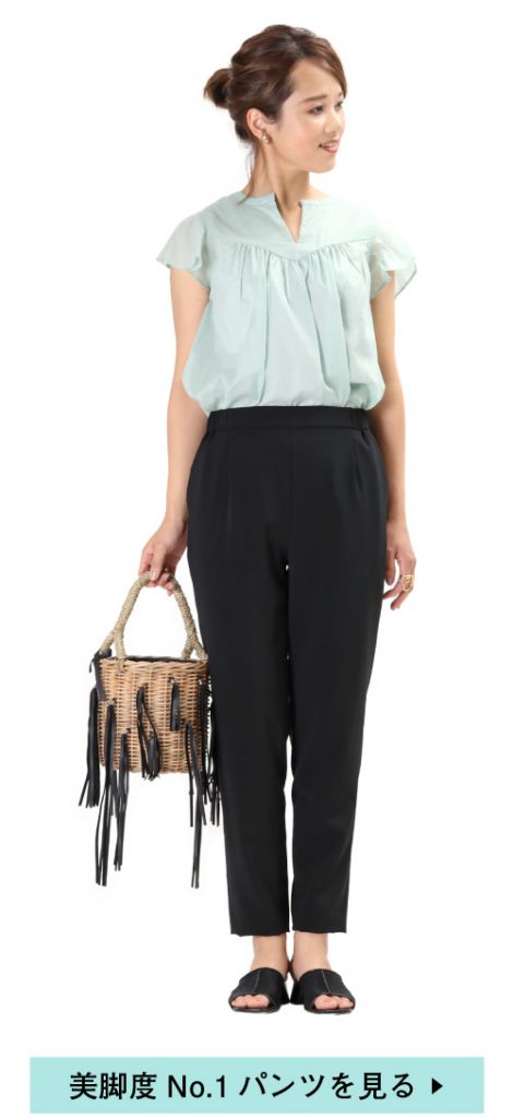短すぎないクロップド丈で、足首を少しだけ見せた美脚力の高いデザイン。