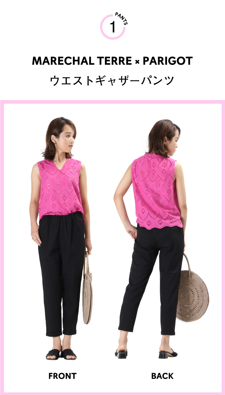 「MARECHAL TERRE×PARIGOT ウエストギャザーパンツ」よりも更にきれいめ。