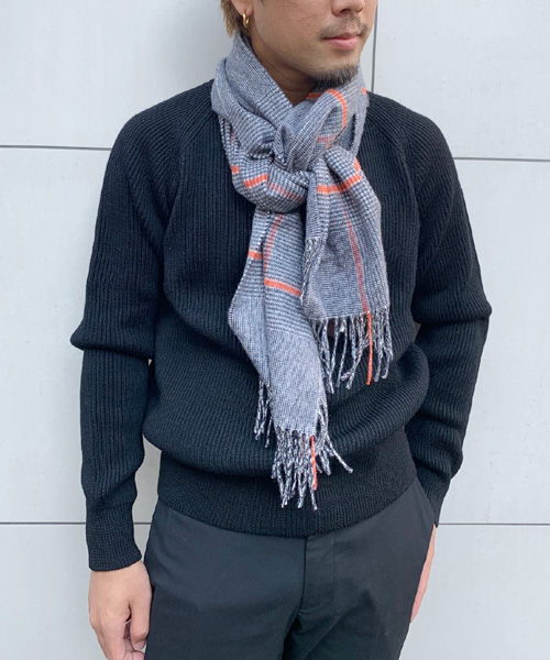 首に巻いてもボリュームが出すぎることもなく、コーディネートのアクセント使いにぴったりです。