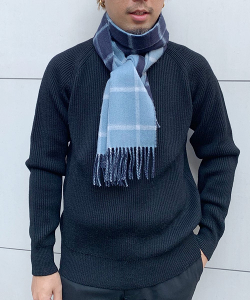 ジョンストンズの定番といえば、肩にそのままかけて楽しめる大判サイズのストールですが、カシミヤの質感をキープしつつ、かさばり過ぎないコンパクトデザインに編み上げられたモデル。