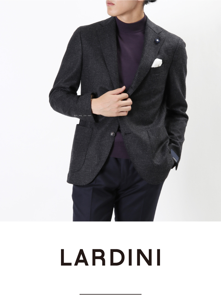 本場イタリアにて生産されたラルディーニの一着は、非常に軽量でボディラインに心地良くフィットするらしい美しいシルエットが特徴。