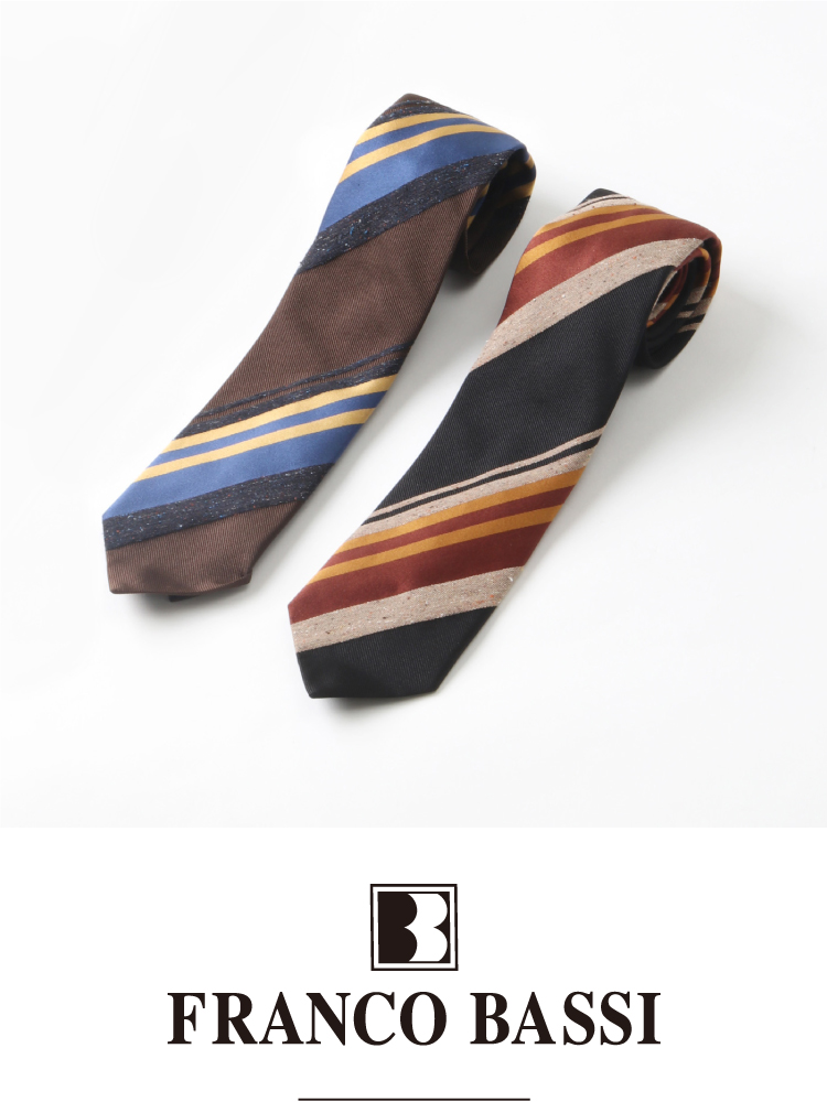 コーディネートの仕上げに欠かせないシルクタイは、華やかなカラーリングが魅力。