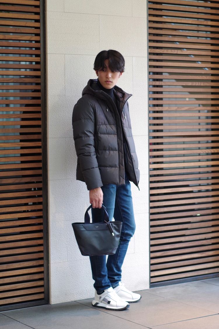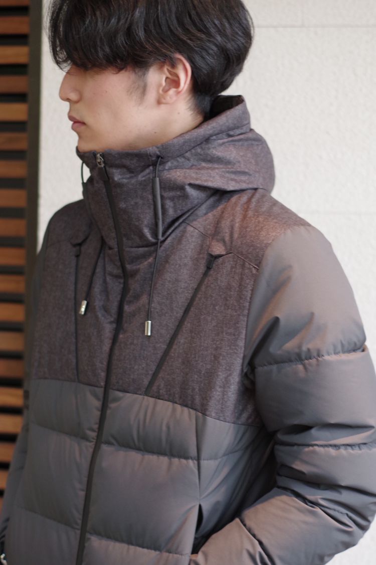 見頃のウールと異素材のコントラスでエレガンス×スポーティを体現したHERNOの定番です。