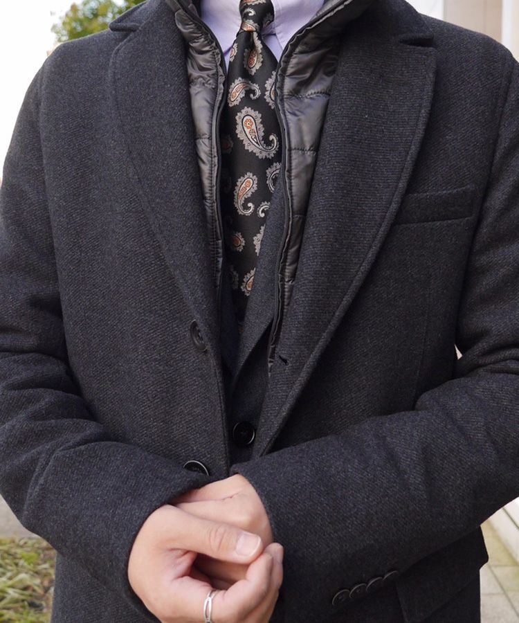 サルトリアの技術を活かしたチェスターコート。
