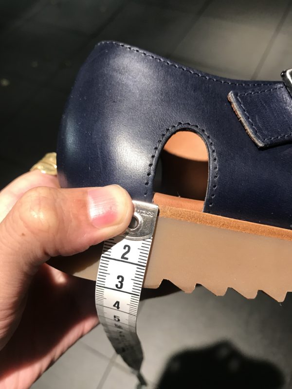 自社製ソールもロゴ入りで、物作りの丁寧さが伝わってきます。