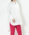 すっきりとしたVネックのノーカラーがクリーンな好印象です。